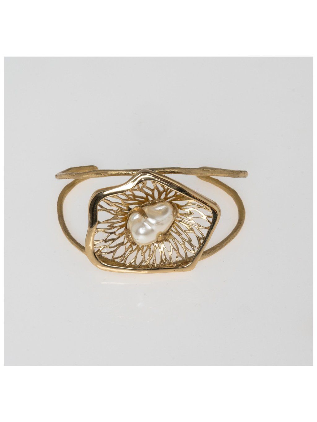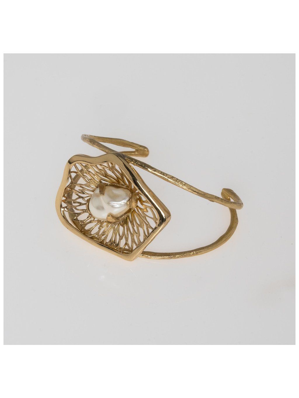 Tento originální šperk je ruční práce z rodinné řecké dílny Kalliope, kde se řemeslo předává s láskou z generace na generaci. Elegantní zlacený design doplňuje přírodní perla, která dodává celému kousku jemnost a ženskost.