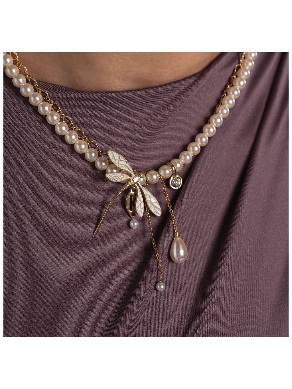 Perličkový náhrdelník s vážkou Kalliope