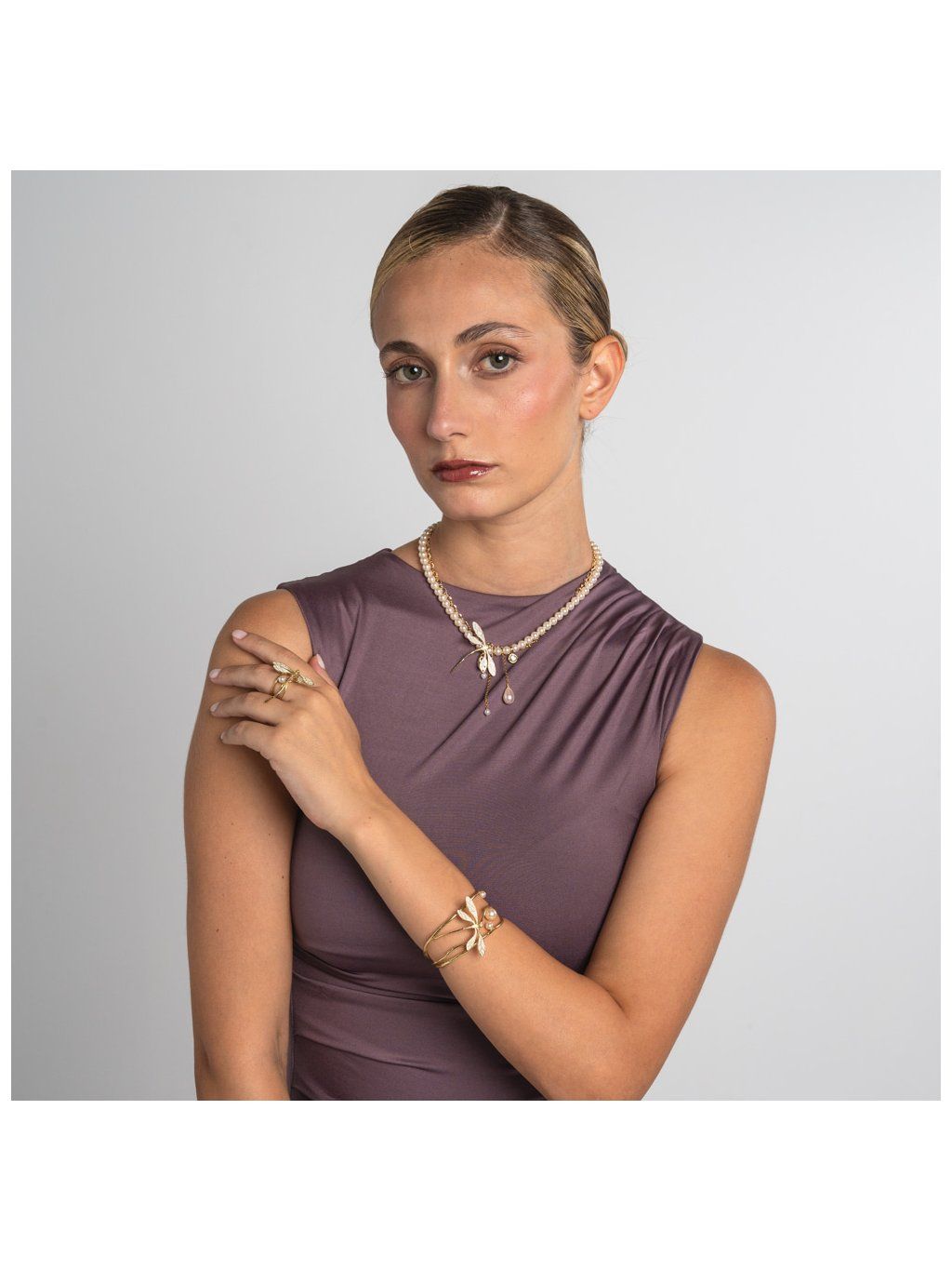 Tento originální šperk je ruční práce z rodinné řecké dílny Kalliope, kde se řemeslo předává s láskou z generace na generaci. Elegantní perlový náhrdelník doplněný designem zlatavého mosazného řetízku a křehké vážky, které dodávají celému kousku jemnost a ženskost.