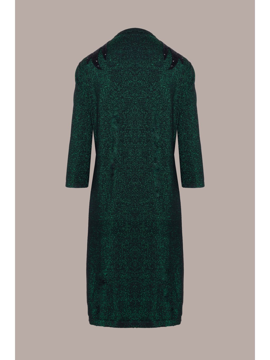 Detaily: Véčkový výstřih, 3/4 rukávy, výšivka na ramenou, volný střih,třpytivý viskózový materiál s elastanem