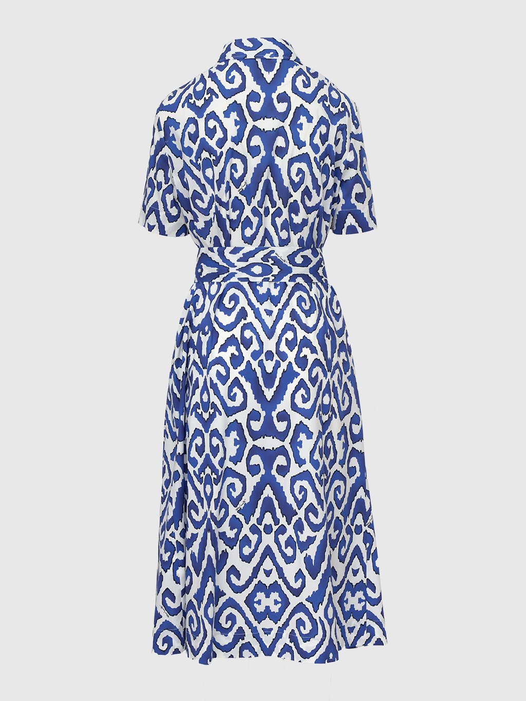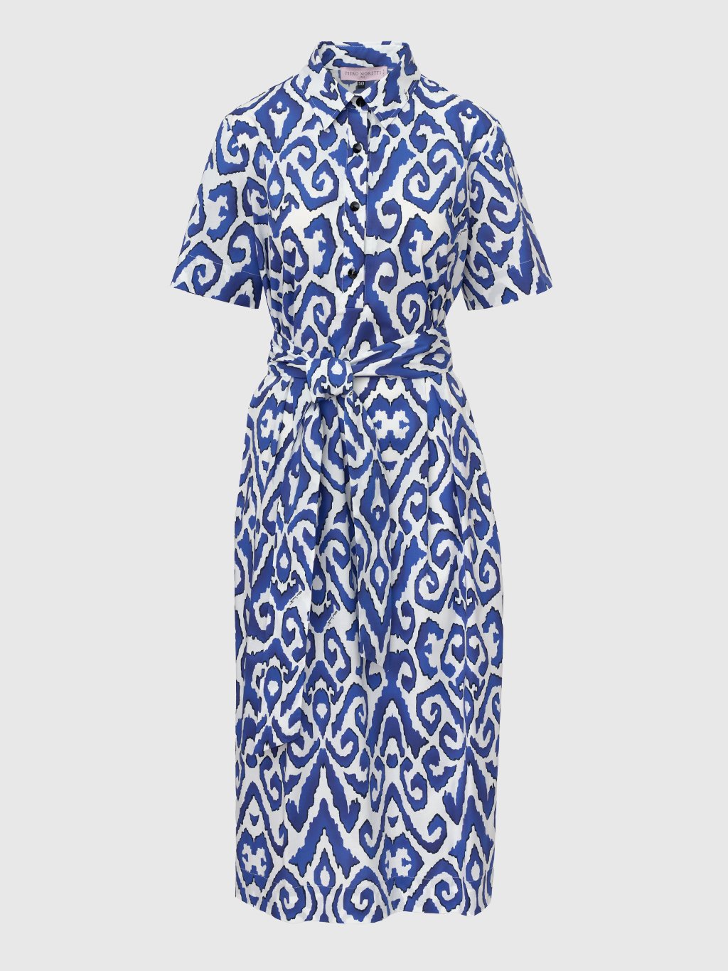 Detaily: Příjemný a vzdušný bavlněný materiál, klasický límec, postranní kapsy, modrobílý pásek,autorský vzor