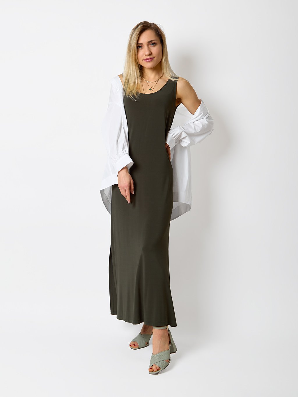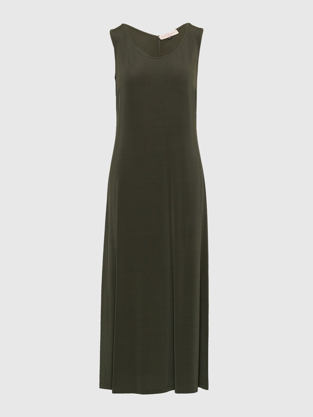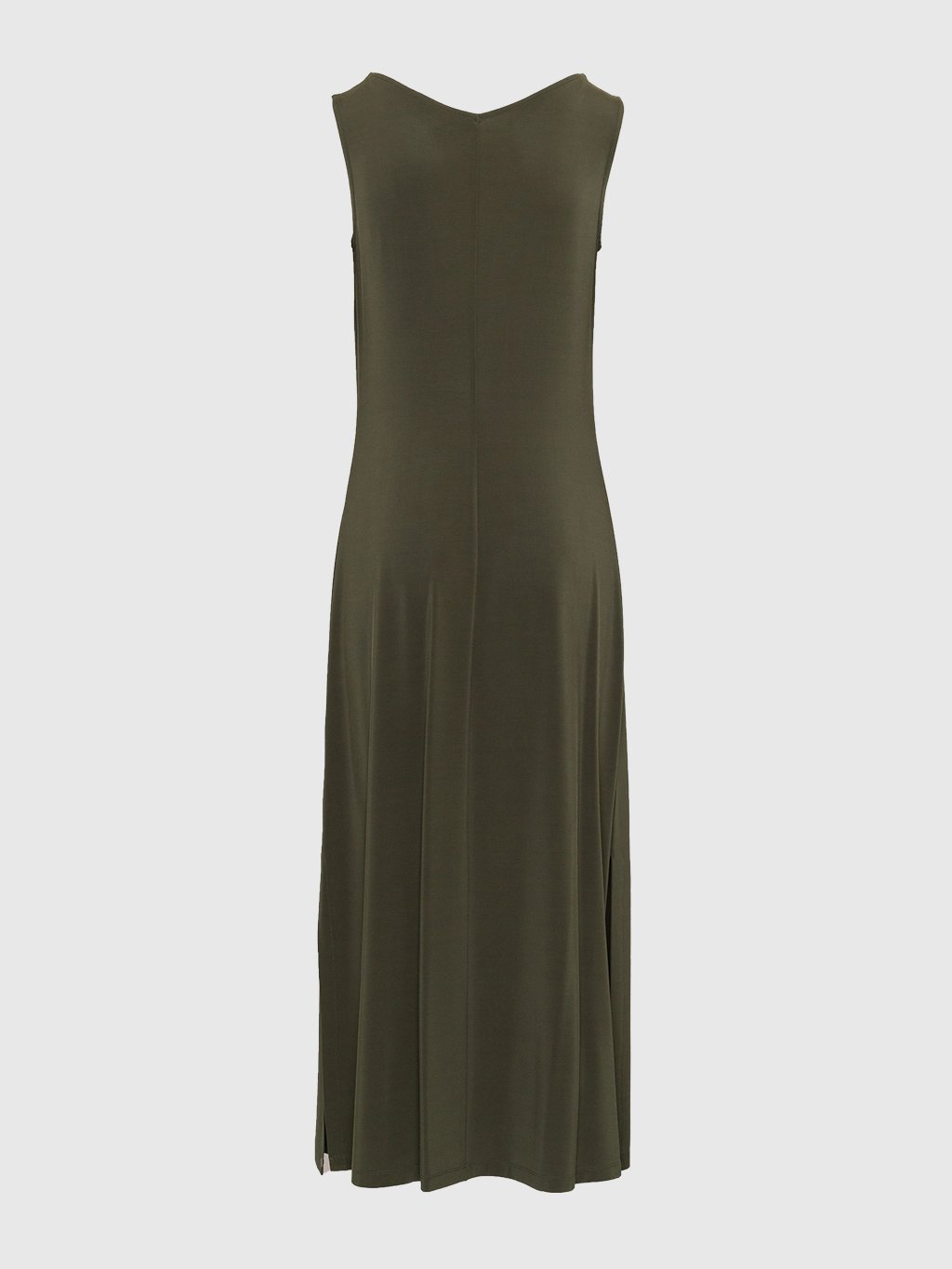 Dámské letní šaty v khaki barvě mají přiléhavý střih, díky kterému vykreslují postavu. Jsou vyrobené z lehkého a pružného viskózového materiálu, který jistě oceníte v horkých dnes za jeho chladivý efekt.