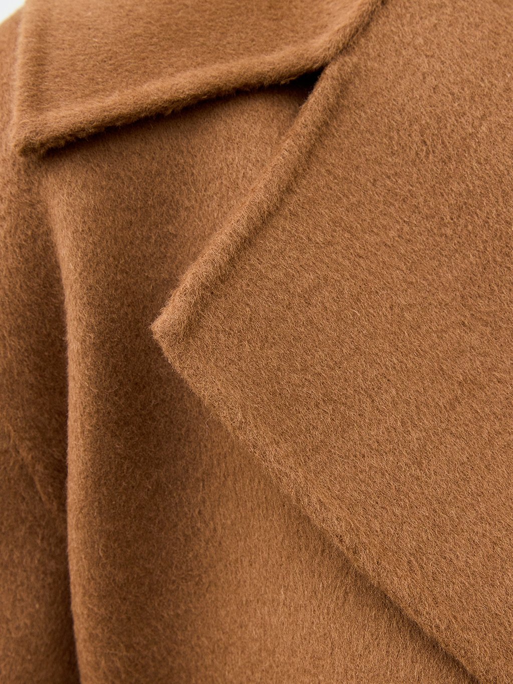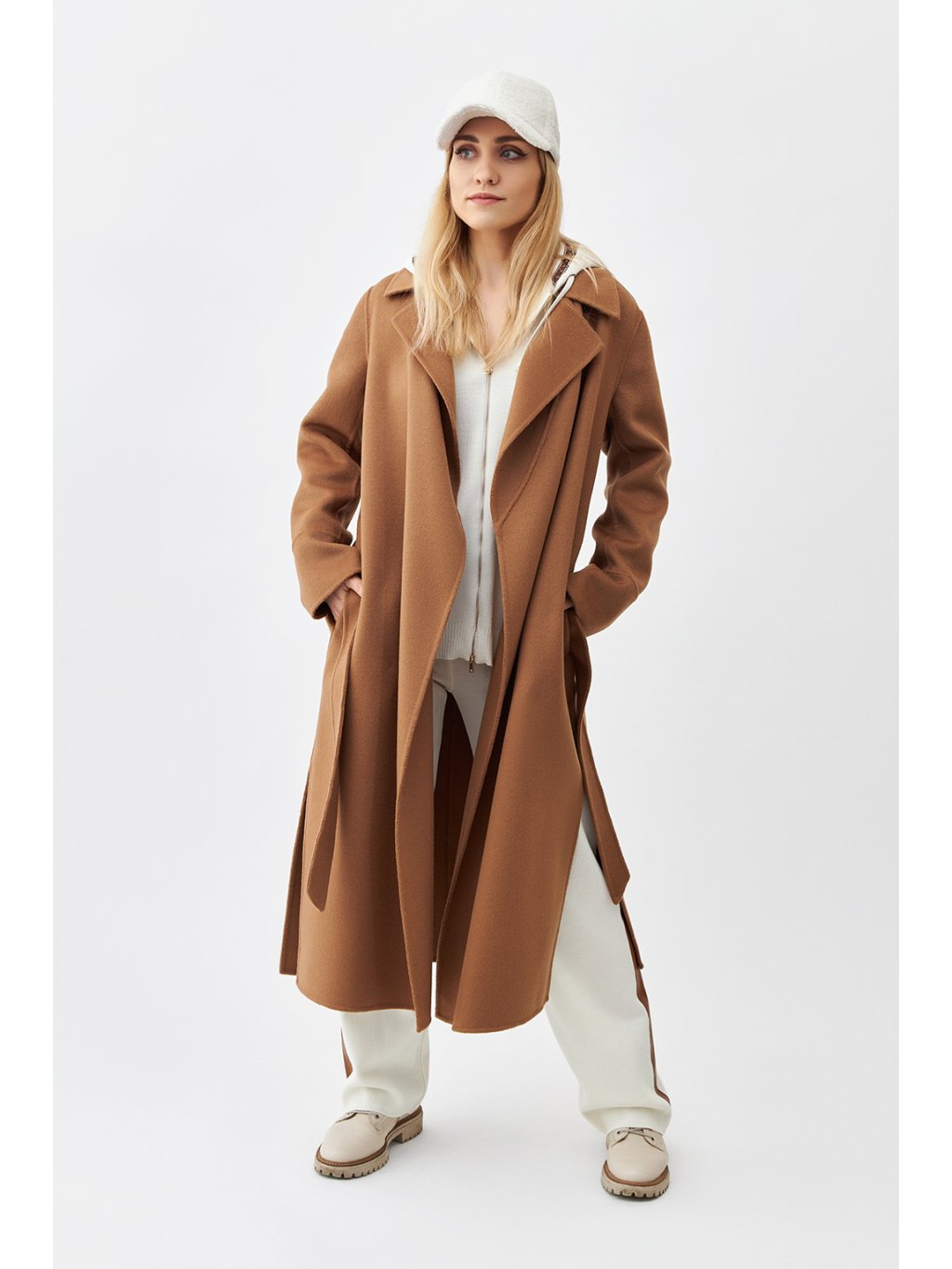 Detaily: Teplý 100% vlněný materiál, 2 postranní kapsy, pásek ze stejného materiálu, maxi délka, boční rozparky, bez podšívky