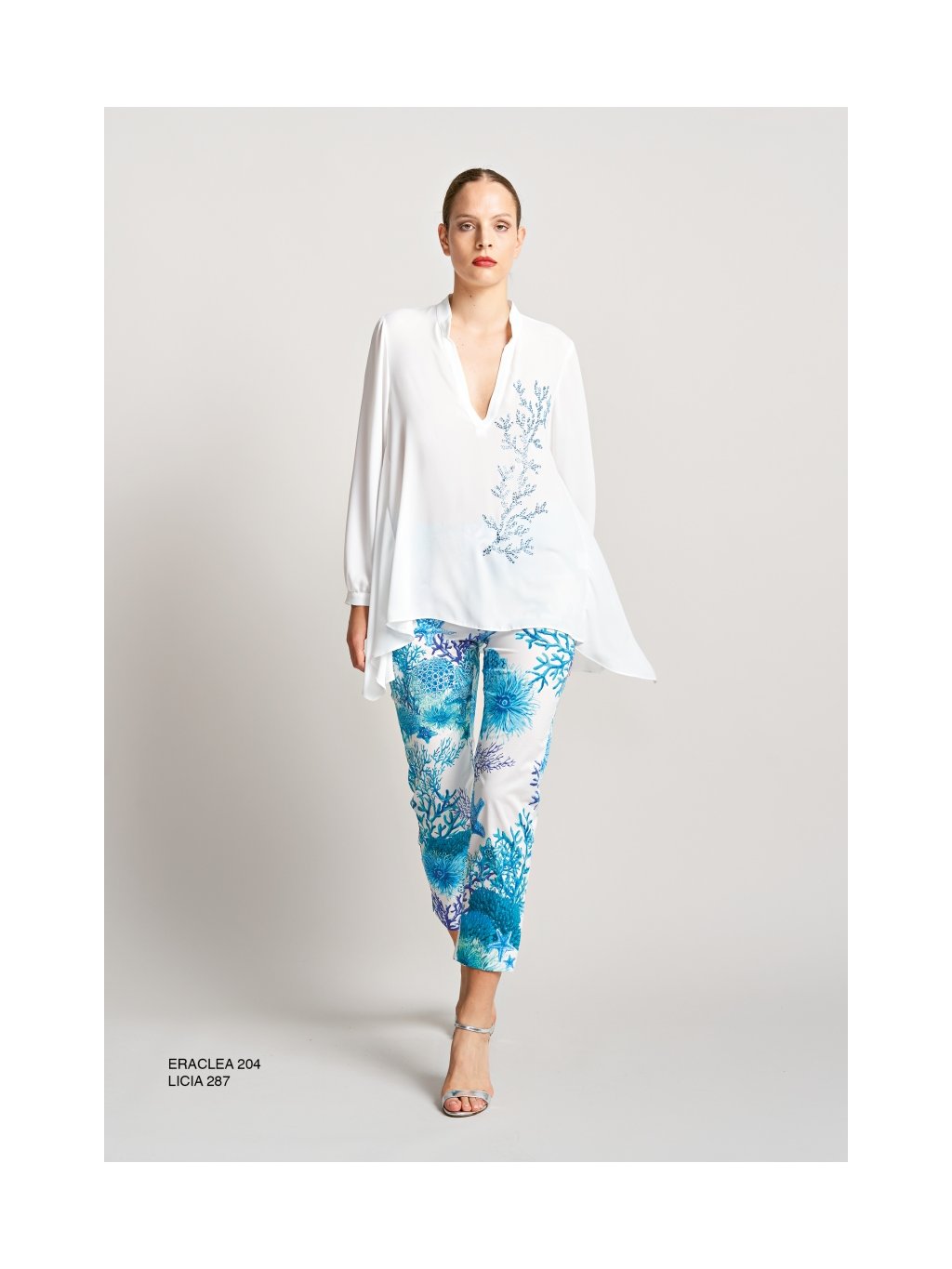 Elegantní halenka se třpytivou aplikací se hodí ke kalhotám i k sukni. Vhodná na běžné nošení, do práce, ale i na společenské události s ní záříte