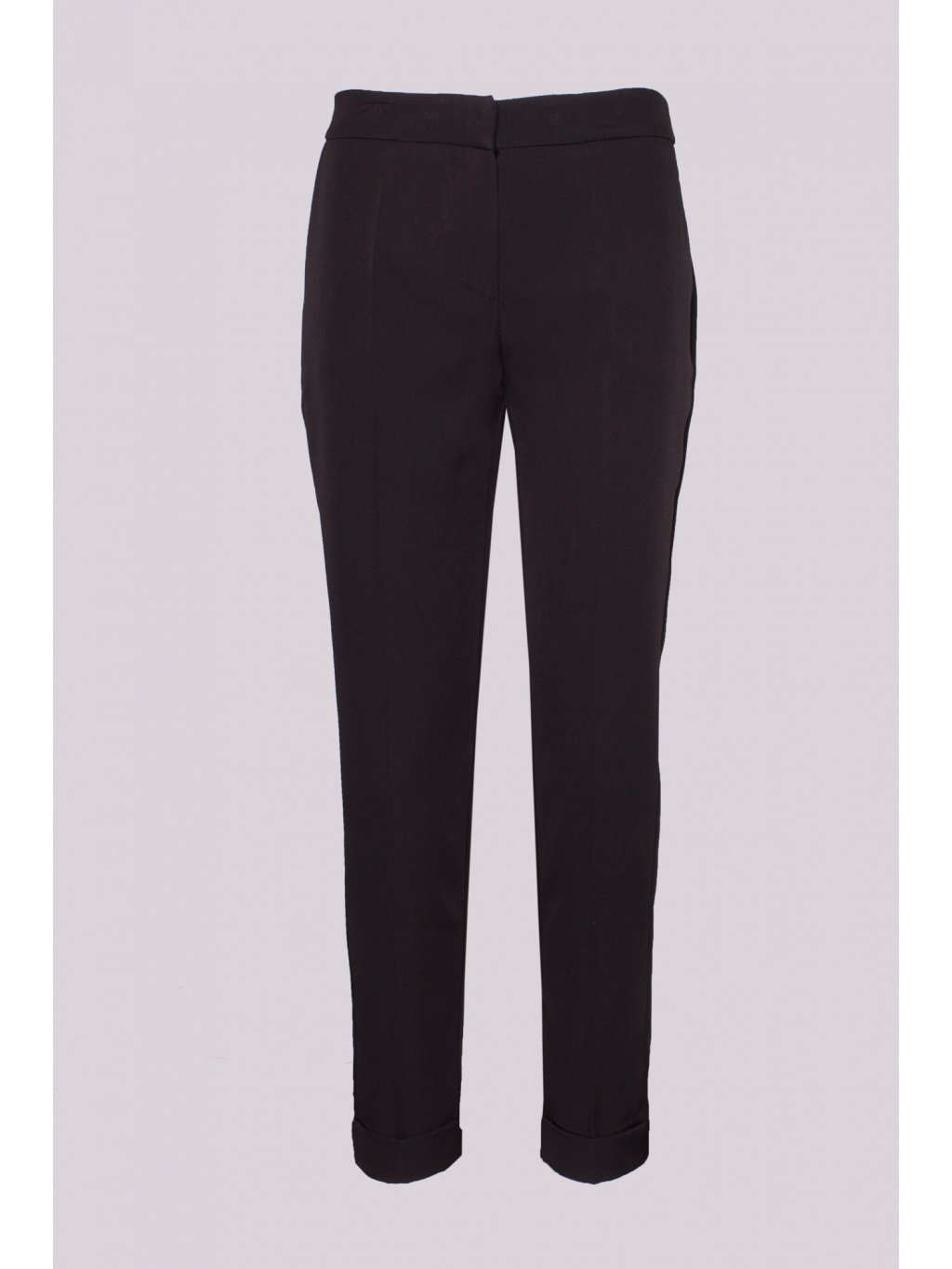 Casual černé kalhoty s puky mají mírně zúžené nohavice s ohrnutým lemem. Jedná se o nadčasový kousek, který patří mezi základní prvky šatníku