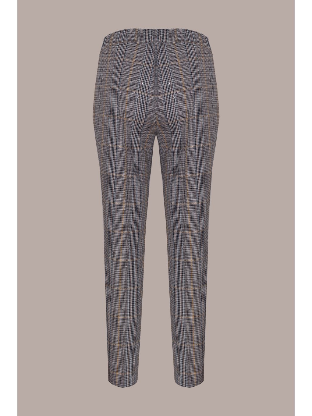 Tento model je aktuální a zároveň nadčasový. Má elastický pas, do kterého je možné zastrčit stylově svetr, rolák či košili. Zároveň užší nohavice a délka nad kotníky se skvěla hodí takřka ke každé obuvi. K tomu vzor kostky a její kombinace černé, hnědé a béžové barvy odkrývá širokou škálu stylových kombinací.
