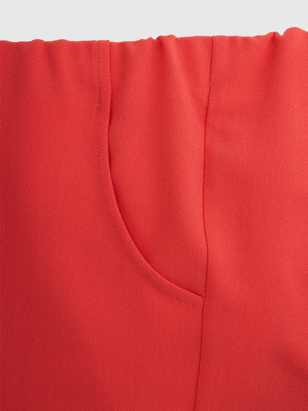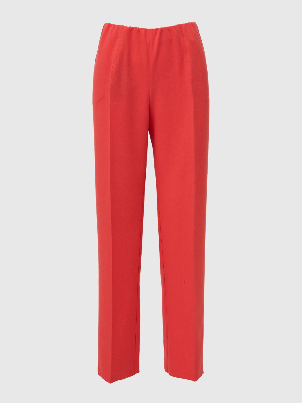 Detaily: Příjemný materiál s elastanem, rovné nohavice, elastický pas, pasové záševky, dvě postranní kapsy