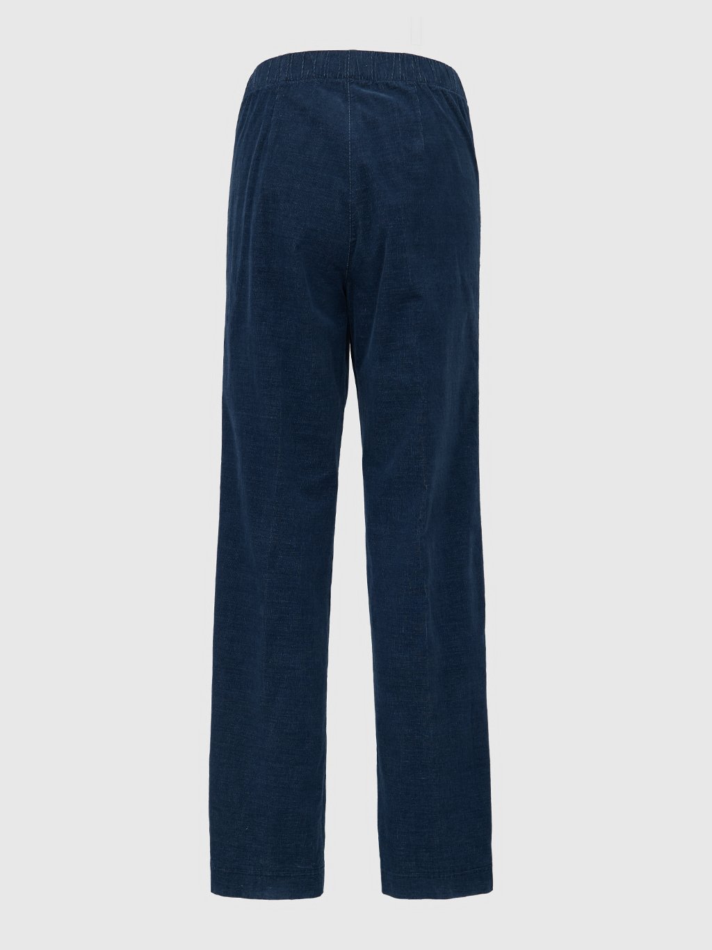 Detaily: Příjemné bavlněné manšestrové kalhoty v modré barvě, s kapsami na přední straně, pružný pas do gumy
